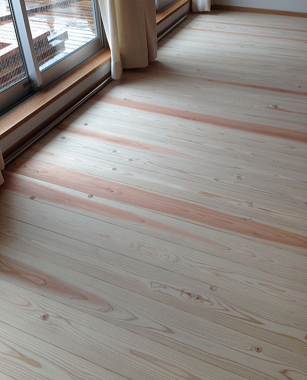 フローリングに用いる杉は主に島根県産となります。少量ですが隣接する近県産の杉も含まれます。 |